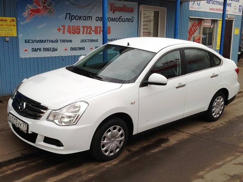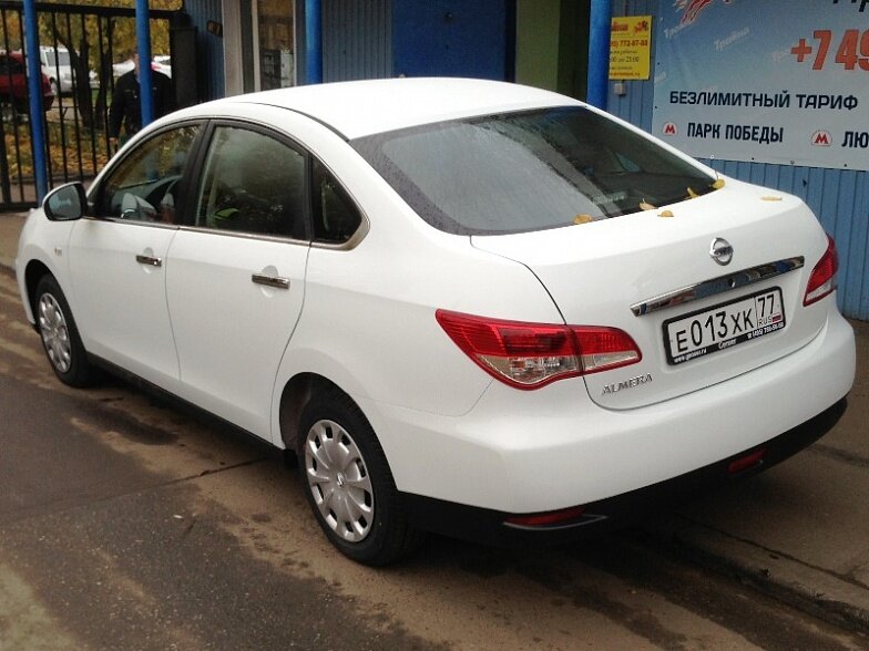 Московская прокатная компания «АрендаАвто-лпв» предлагает взять в аренду Nissan Almera IV MT белого цвета с механической коробкой передач по низкой цене.